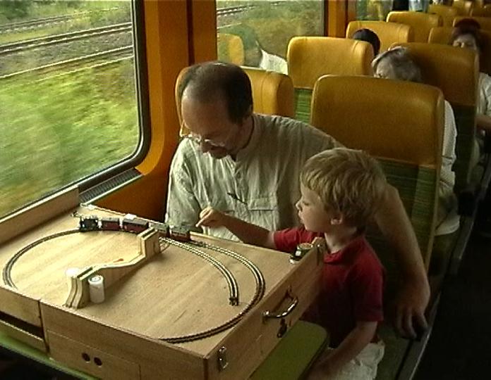 Already in 1987 I became aquainted with Deutsche Reichsbahn railwayman Hans Schellenberg of Zschopau (East Germany, then GDR). In uncounted standby duty hours he created a foldable micro layout from an old wooden suitcase. It allows for instant model railway operation almost everywhere.