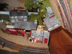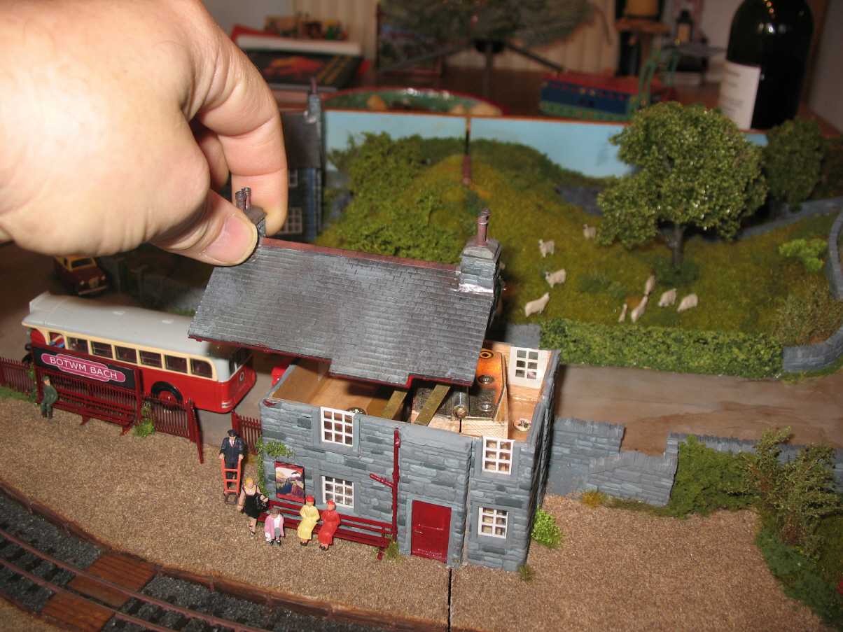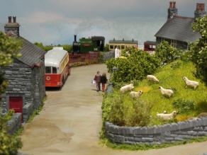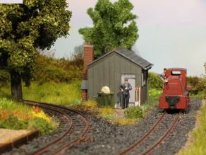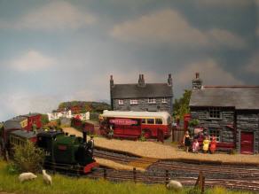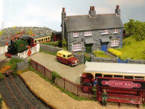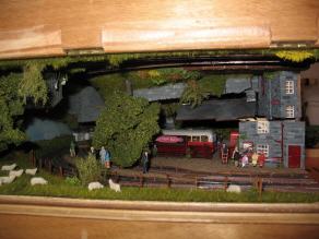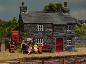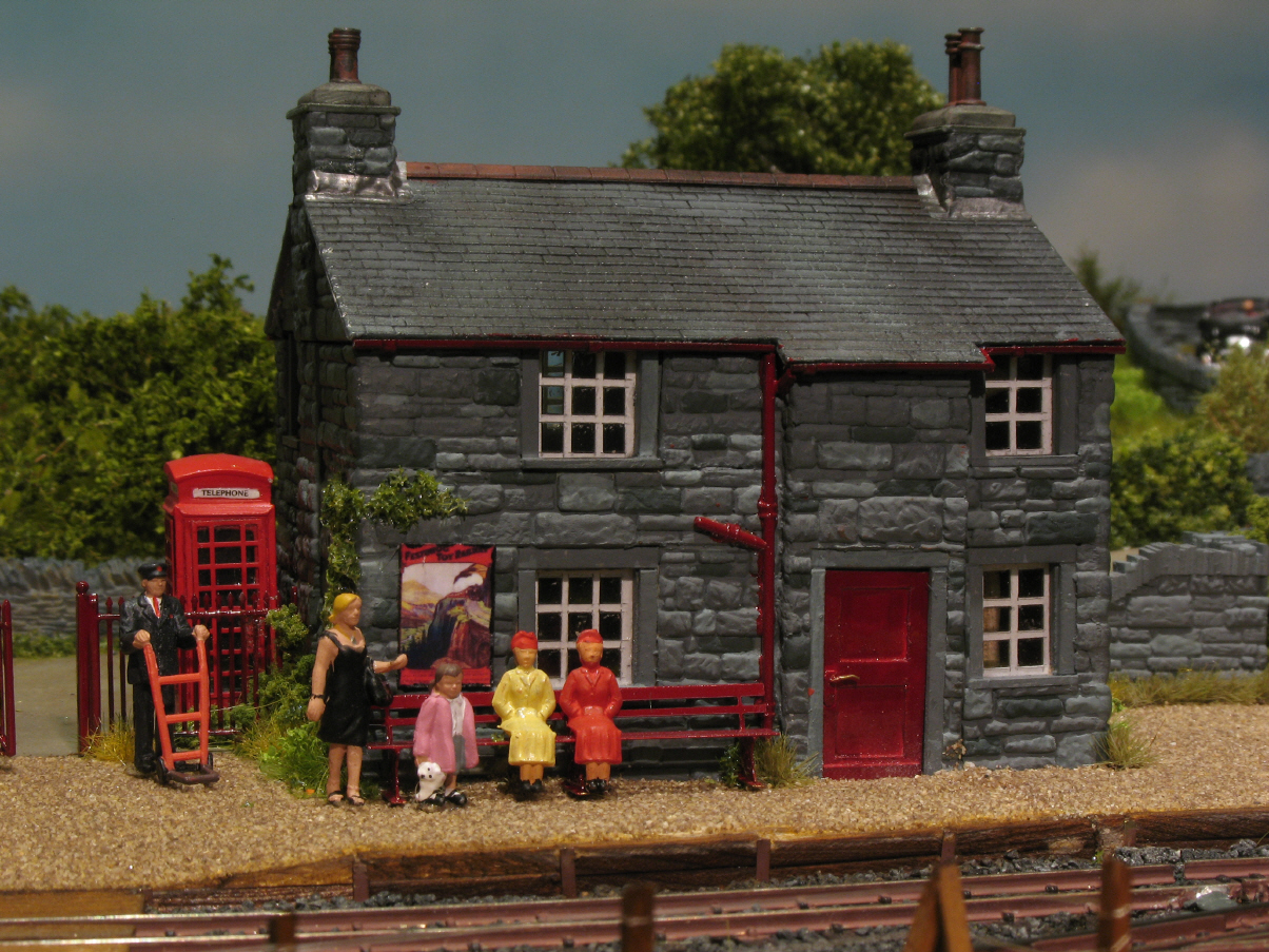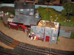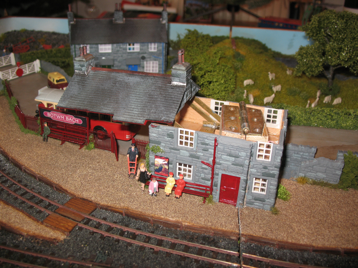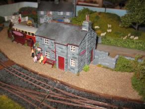 So on an area of less than 5 square feet a typical welsh scenery was created, with a station building, semi-detached cottage, dry stone walls, sheep and the remains of an abandoned slate quarry - and a narrow gauge railway of course!