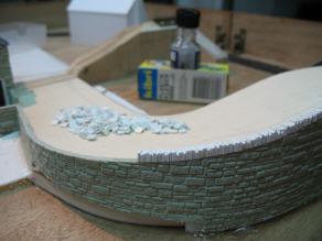 The walls (also those of the buldings) have been made from Wills polystyrene sheet.