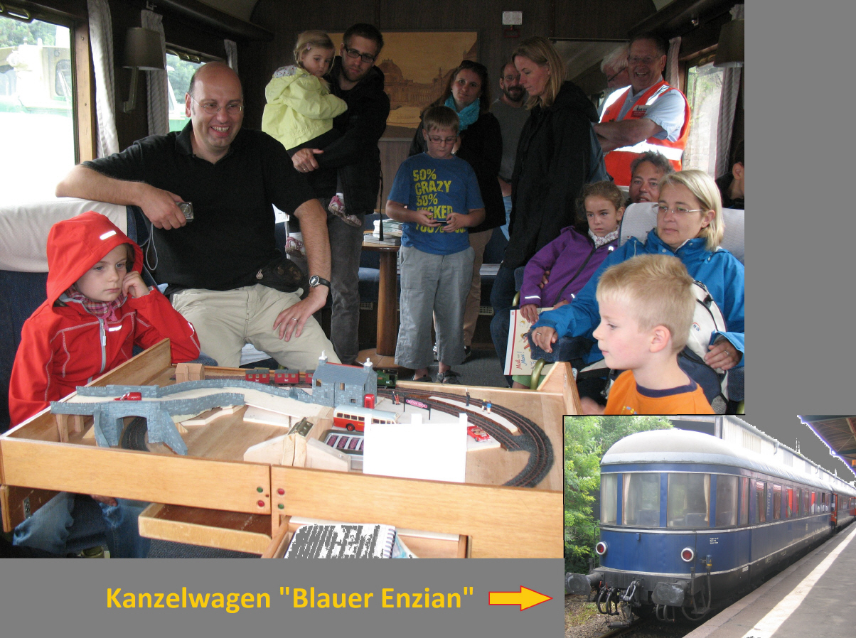 Steam operation in a vintage saloon carriage of the DB "Blauer Enzian" express train.