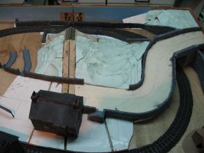 The base of the scenery is made of expanded polystyrene, cut and formed with a heated wire.