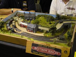 At the Warley Show in Birmingham. In 2013 this was the first public performance of the finished layout, after having been operated without scenery for several years.