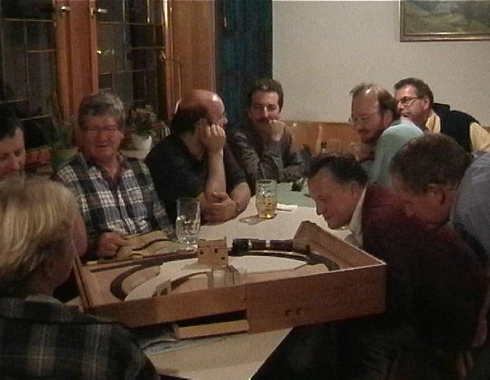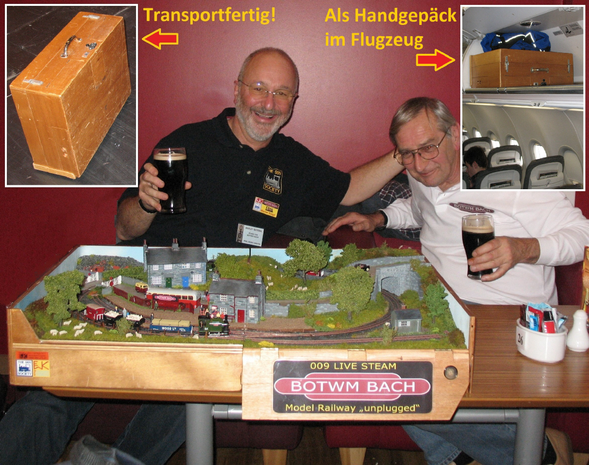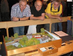 The layout can be operated almost everywhere, as it doesn't need mains supply. It is especially welcome as an extra perfomrance in the pub after a long exhibition day!