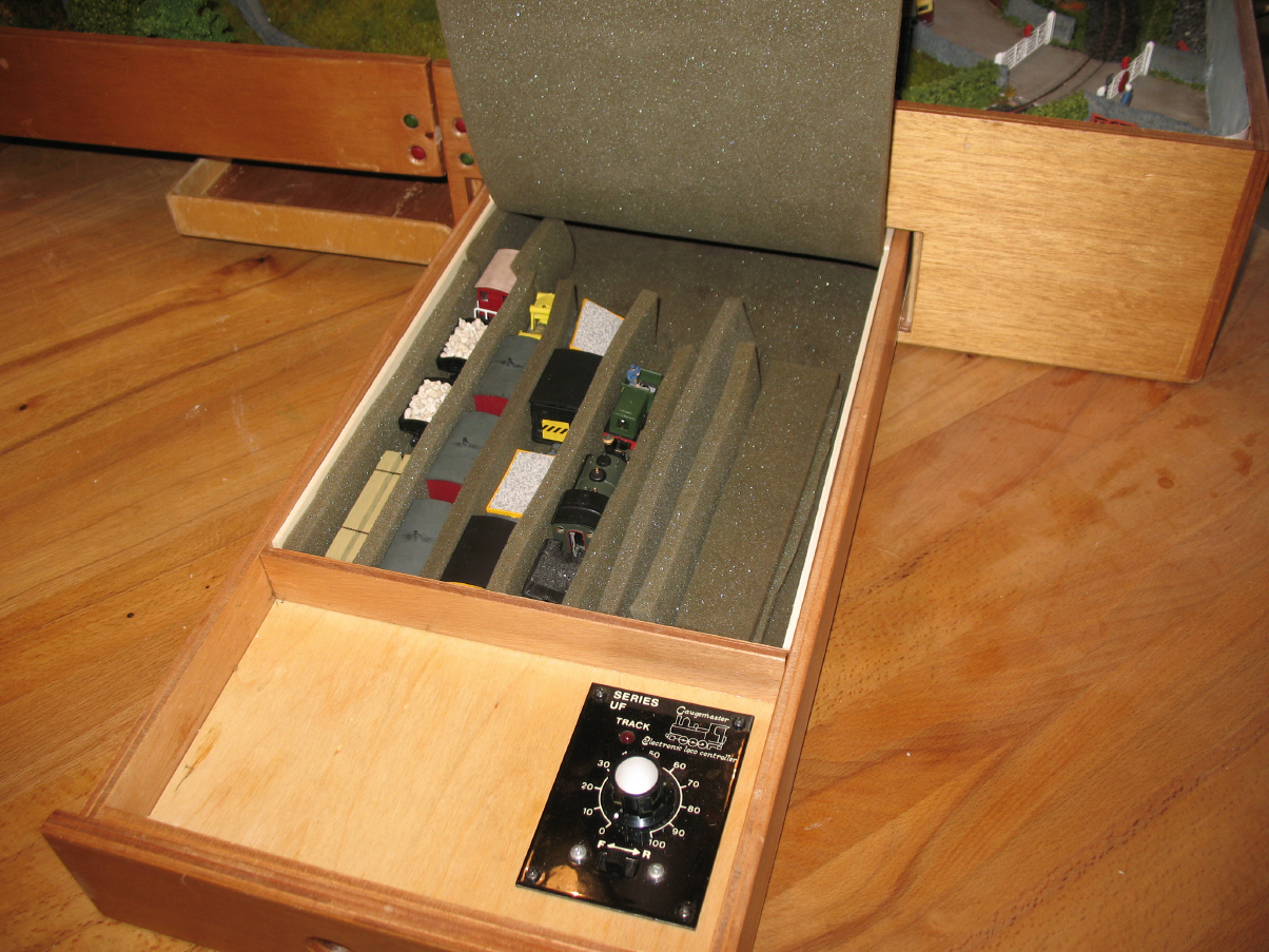 ... provides space for the rolling stock. Stock is being safely protected with strips of rubber foam.