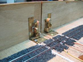 Both points are operated from the rear of the layout by the wire-in-tube method.