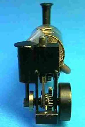 The driving power is created by a standing steam engine in the cab with piston valve. It transmits its high-speed power via multiple gears to the driving wheels. This results in a prototypical slow, steady and powerful performance of the engine. It can haul substantial trains, even on gradients. The piston valve is actuated by a slip excenter, which allows for operatoin in both directions, dependent on the push with that the engine is being started after a three-minute heating-up.
